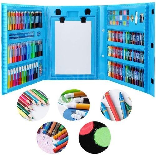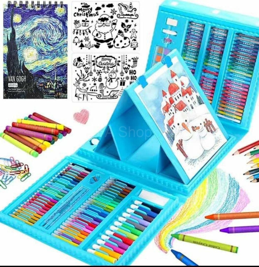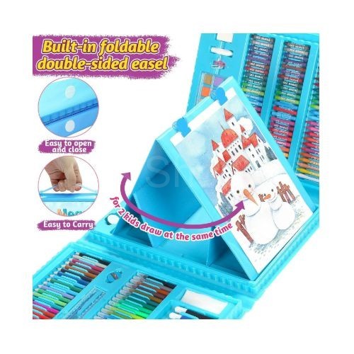 "مجموعة الفن الضخمة المكوّنة من 208 قطعة – باللون الأزرق، هي الرفيق المثالي للأطفال الذين يحبون الرسم والتلوين والتلوين بالفرشاة والإبداع. هذه العلبة الكاملة والعملية والملوّنة تطلق العنان للخيال في أيّ وقت من اليوم."