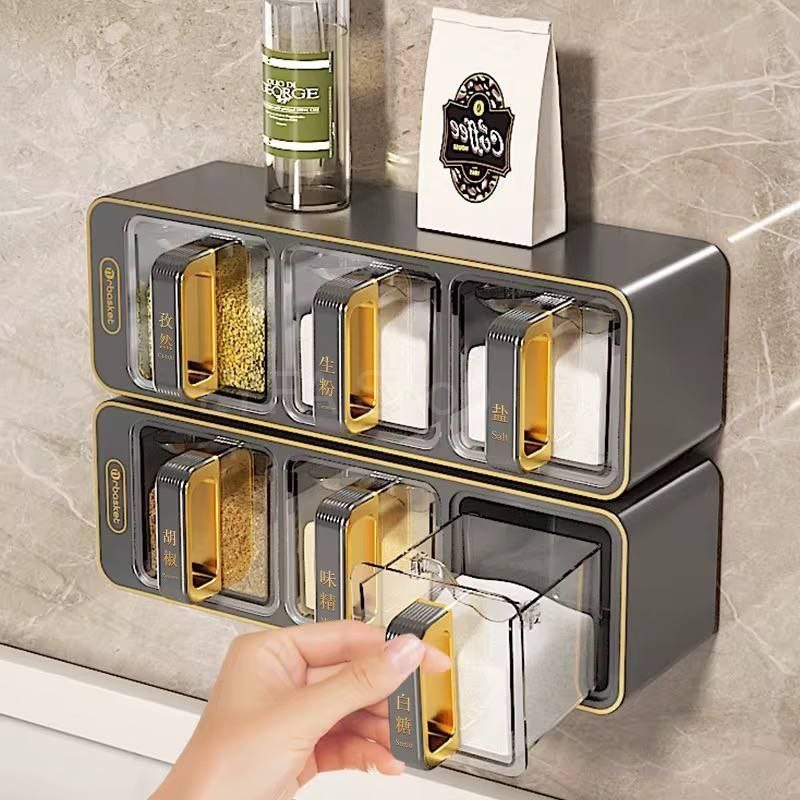 مصنوع من مواد عالية الجودة، وبمقبض أنيق بلون ذهبي يمنح مطبخك لمسة فاخرة. يمكن تركيبه بسهولة على الجدار دون الحاجة إلى الحفر، مما يوفر المساحة على الرخامة ويجعل الوصول للمكونات أسرع وأسهل.