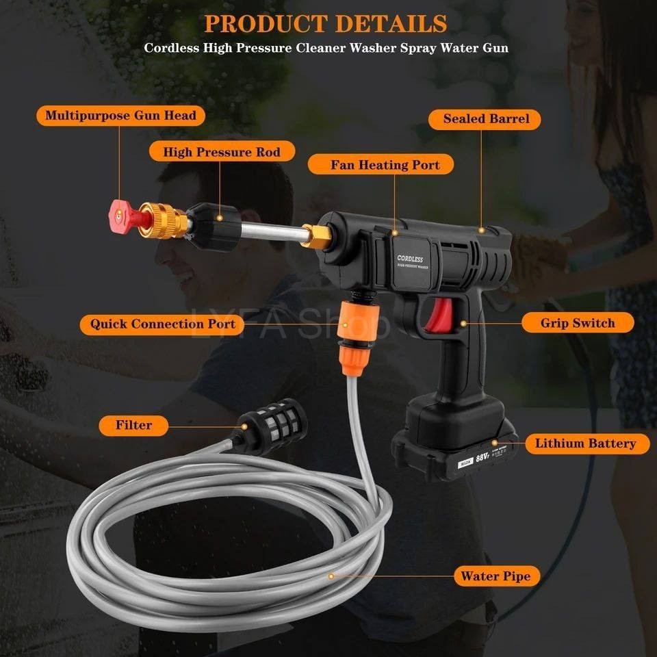يجي معاه مجموعة ديال الإكسسوارات المختلفة: رأس متعدد للرش، فلتر للماء، خرطوم طويل، إضافة إلى فوهات مختلفة كتعطيك خيارات متنوعة حسب الحاجة (رش قوي – رش ناعم – رغوة للتنظيف بالصابون 🧼).